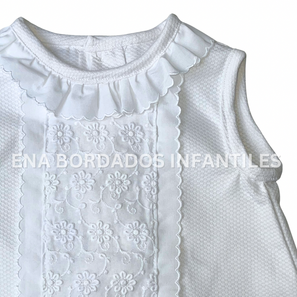 Batita piqué blanco con tira bordada