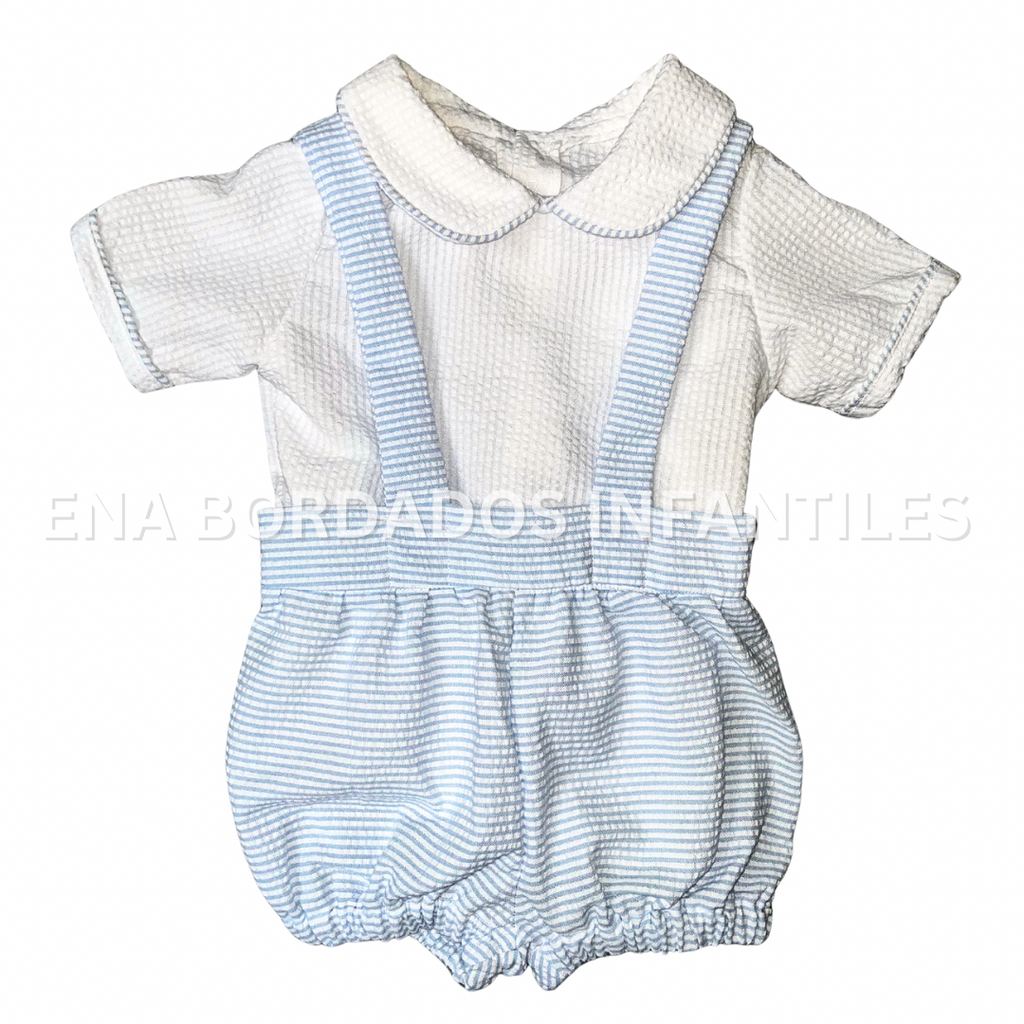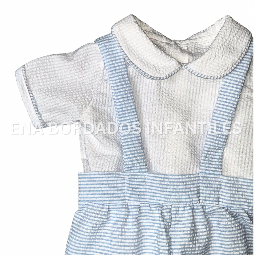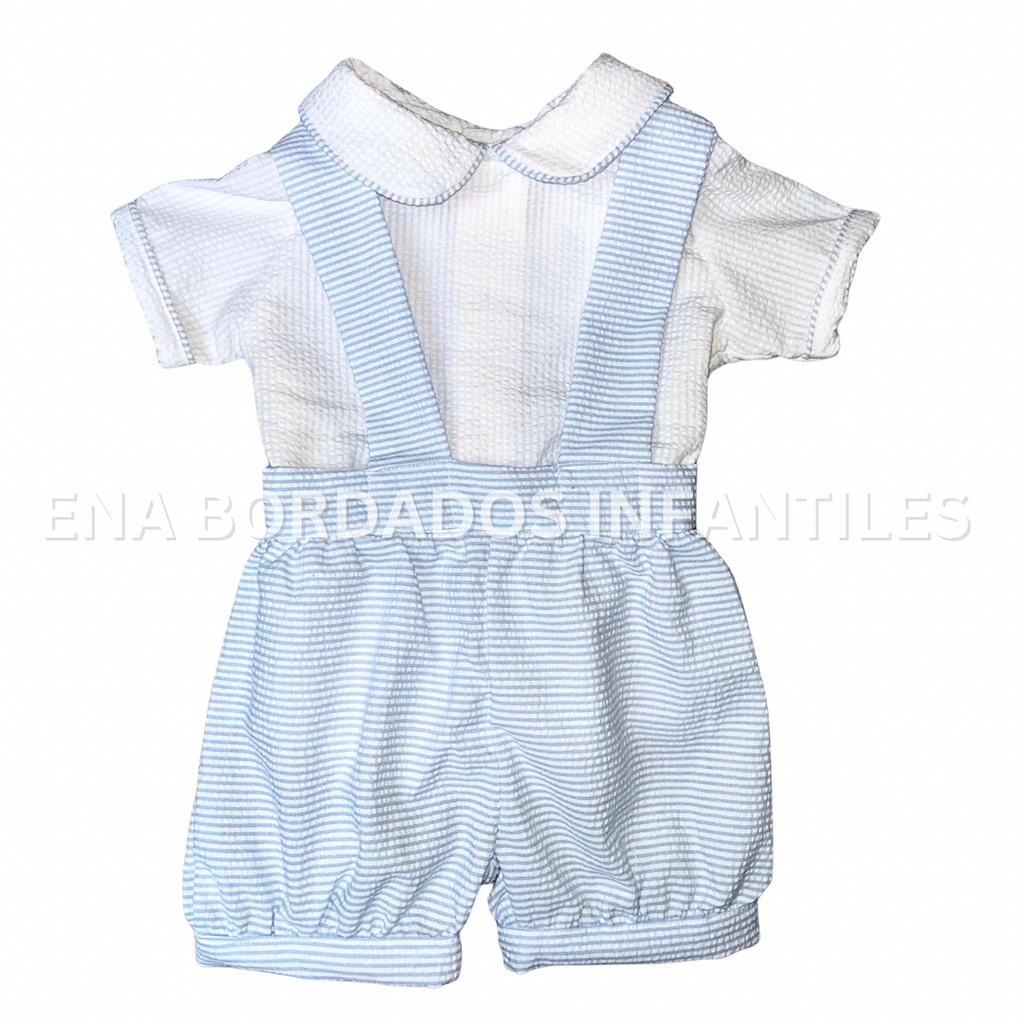 Trajecito Nicolas seersucker rayas celeste